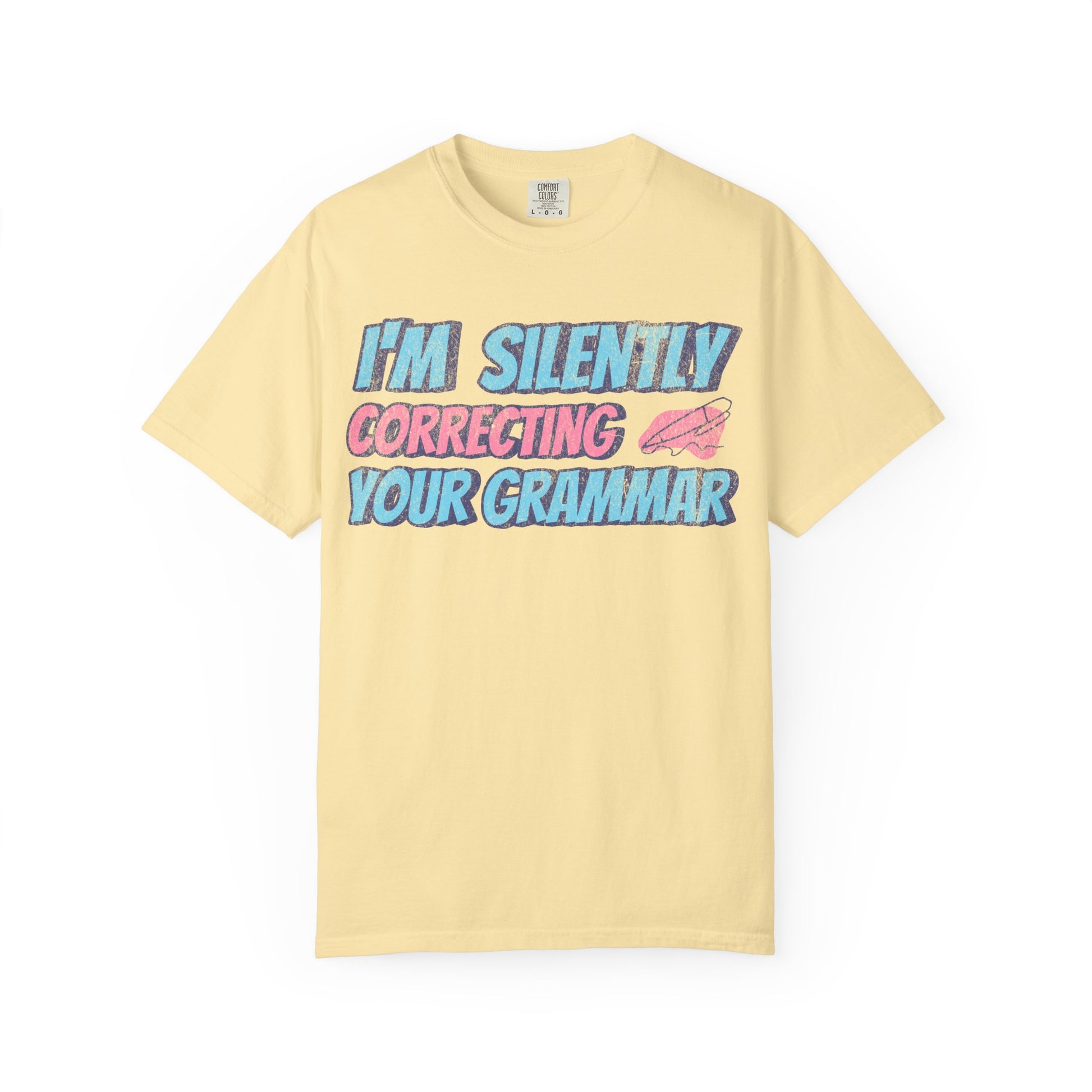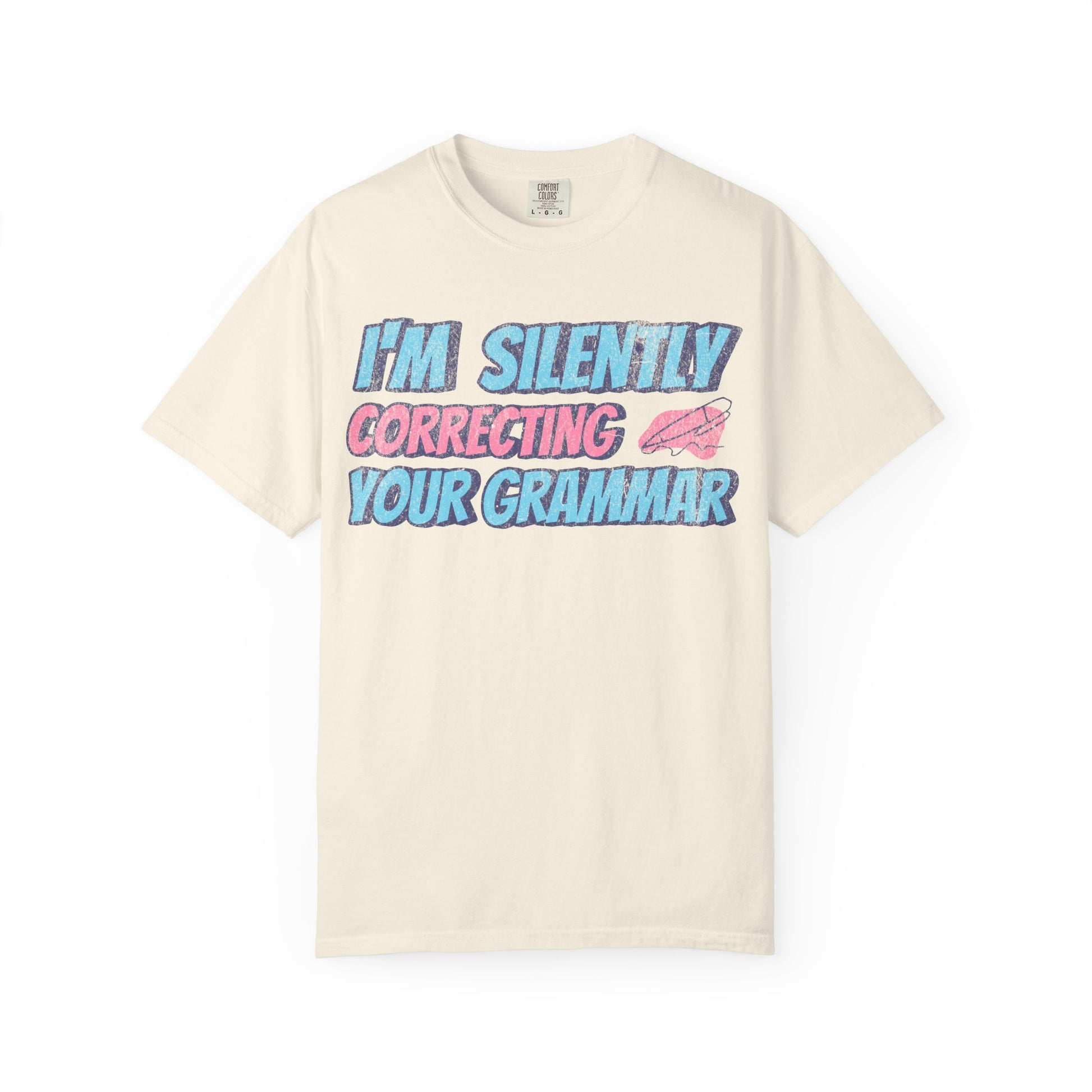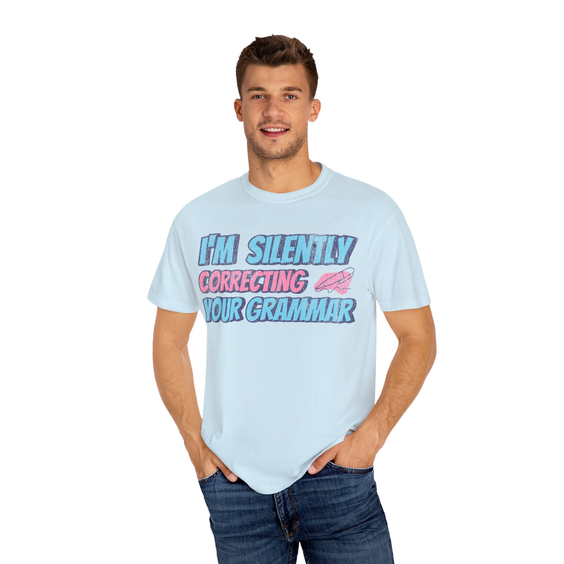 Introducing our Unisex Garment-Dyed T-shirt, a playful and stylish addition to any wardrobe. This tee exudes a fun atmosphere with its cheeky slogan, ideal for grammar enthusiasts and those with a sense of humor. Perfect for casual outings, relaxed weekends, or even virtual hangouts, it fits seamlessly into everyday life. It's a great choice for teachers, students, or anyone who appreciates language and literature. Celebrate occasions like back-to-school, birthdays, or just treat yourself and fellow grammar geeks to a delightful wardrobe update. Available for both women and men, and suited for a range of body types, ensuring comfort and a perfect fit.