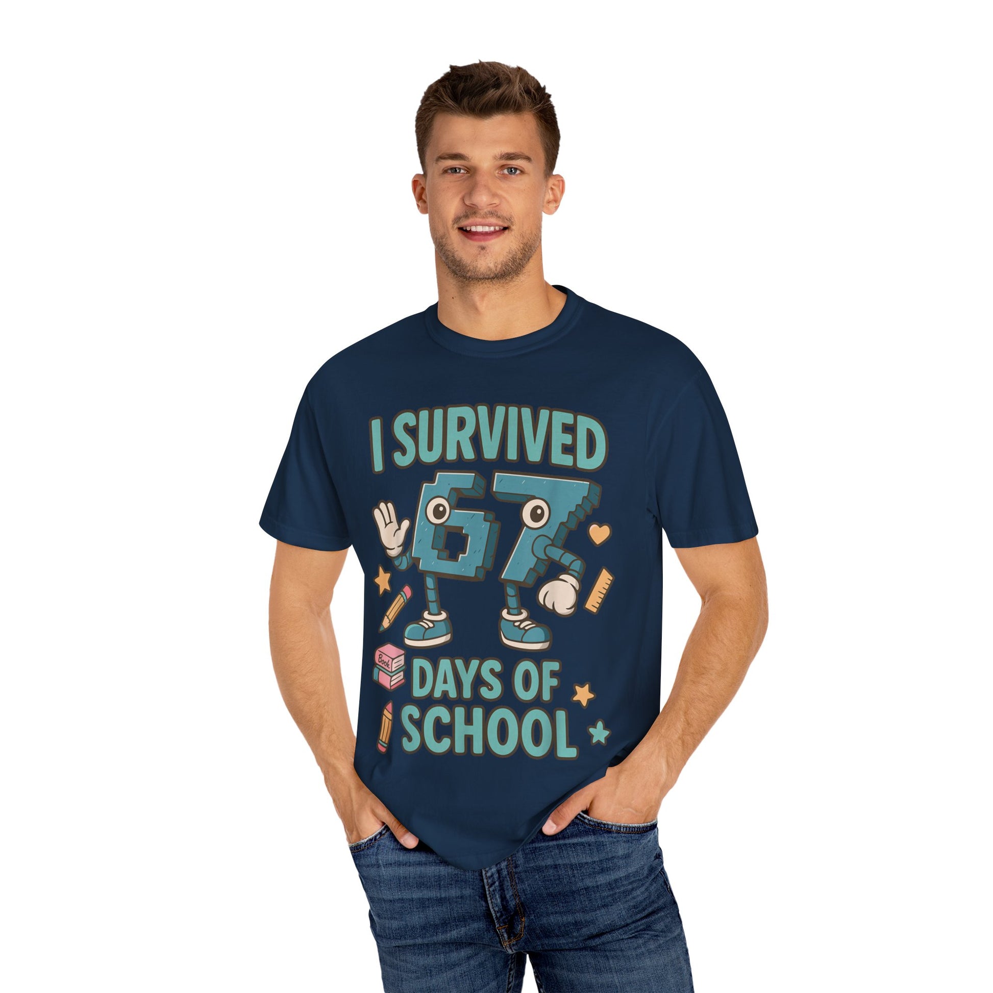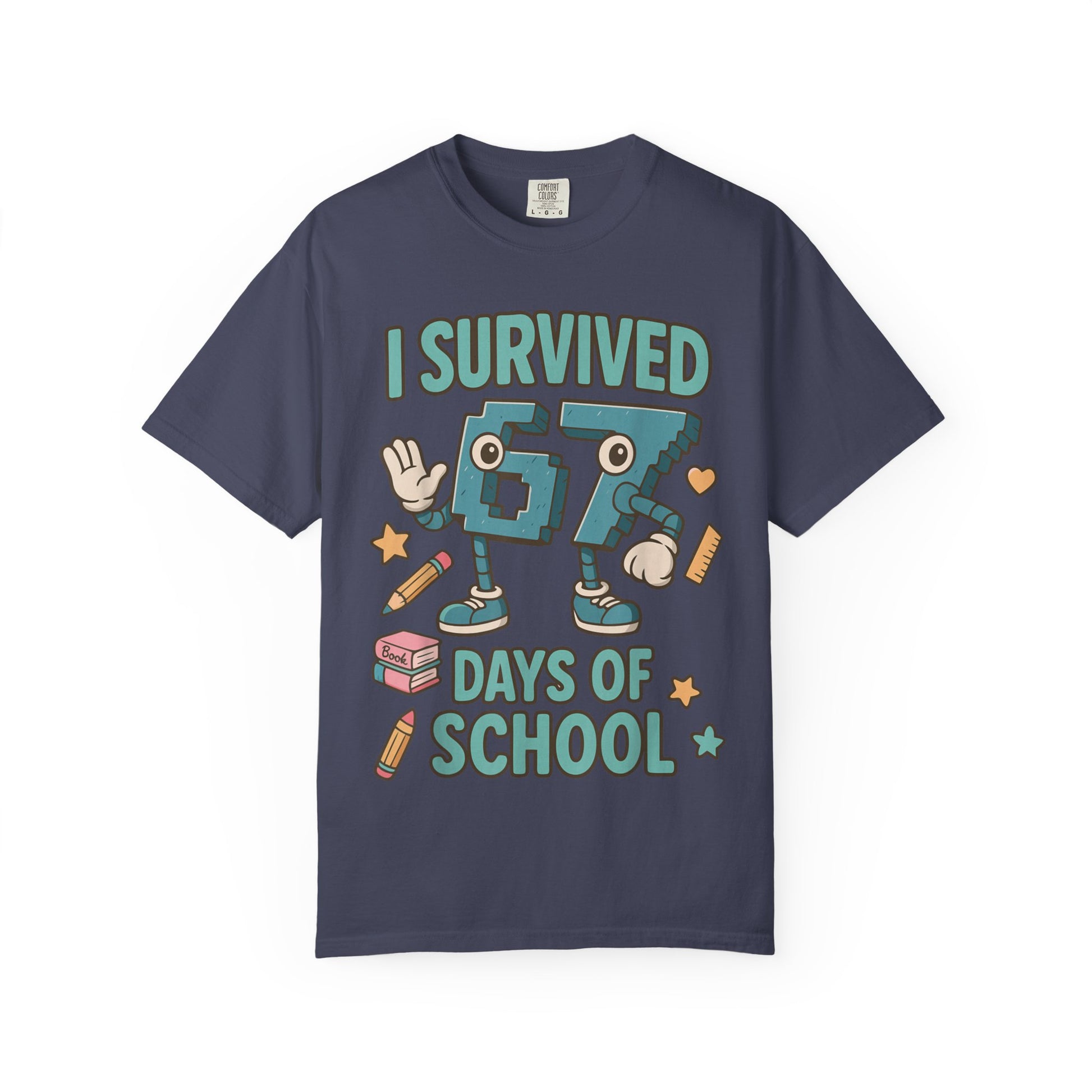 Kids 6-7 Meme I Survived 67 Days of School Comfort Colors 1717 T-Shirt — Funny Back-to-School Graphic Tee for Students